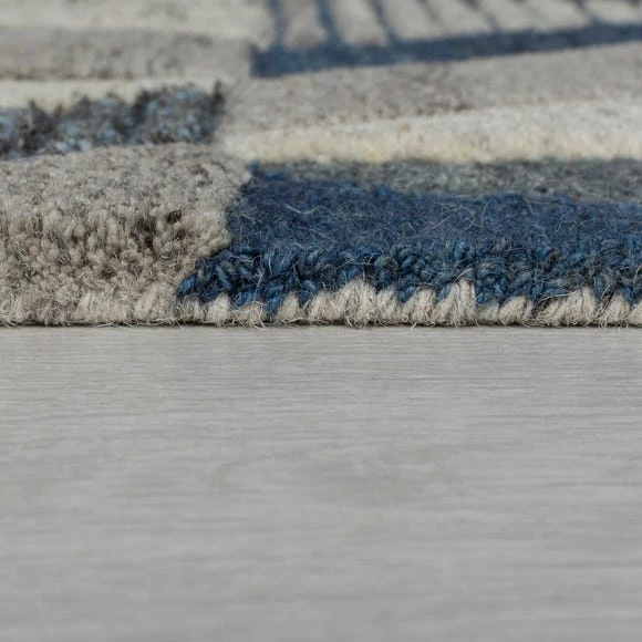 Meet Asher. In cool blue shades, Asher adds some sophistication to any space. In 100% wool perfect for sound and warmth insulation, add depth to your space with the contemporary High and Low hand-carved effect.