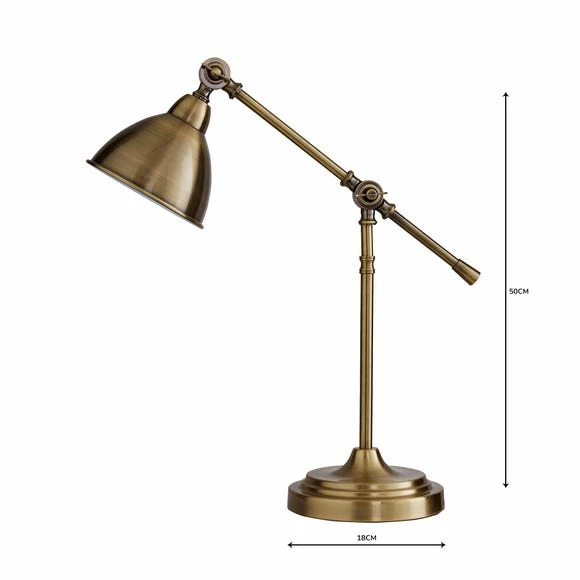 Add a touch of class to your interior with our antique brass lever arm table lamp. Featuring a handy lever that enables you to adjust the height of the lamp, it offers a sleek and modern design. Perfect for adding practical lighting to your office or living space, it will suit a host of interiors.