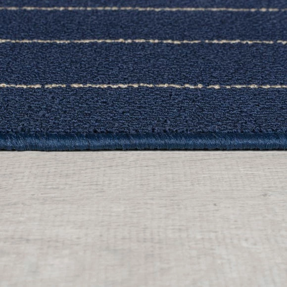 Choose the Practimat Theo Stripe runner, doormat and rug to add some comfort to your busy space. Available in a range of dark colours, paired with a smart pinstripe effect, the 100% polypropylene machine washable composition is perfect for keeping your space fresh and clean. Ready for any spills or dirt the Practimat Theo Stripe range is pet and child friendly. We love using the Theo Stripe by doors to catch muddy prints and in kitchens and bathrooms to add a layer of comfort to hard-floors. The slip resistant backing is ideal for keeping the rug in place.