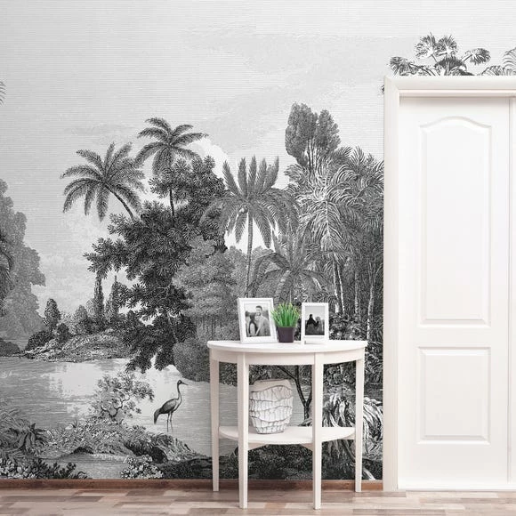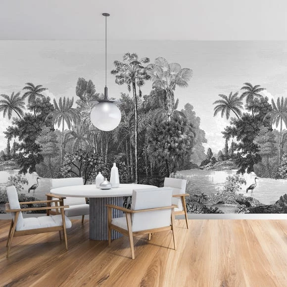 This stunning wall mural features an vintage inspired tropical design with an etched effect, perfect for creating a beautiful feature wall and adding an eclectic touch to your home decor. Boasting easy paste the wall application and a wipe clean surface, this mural is also designed to repeat for walls wider than 3m if additional mural rolls are purchased.