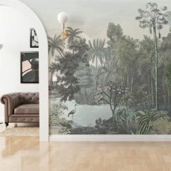 This stylish mural design features a tropical paradise with a vintage-inspired look and finish. Easy to hang, you are required to paste the wall and apply the paper. This application method is time saving compared to traditional wallpapering methods.