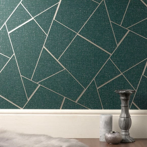 Separated by striking rose gold metallic, the delicate textured emerald ‘shards’ are finished with a dusting of glitter. This geometric Fractal design is the latest additional to the best selling Quartz collection and is the perfect wallpaper for any house this season.