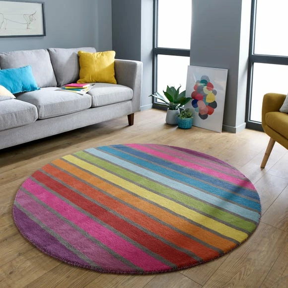 Vibrant, modern and packed with hand-carved detailing, Candy is made from 100% wool. With a statement design our Candy round rug will add warmth, texture and colour to any room.
