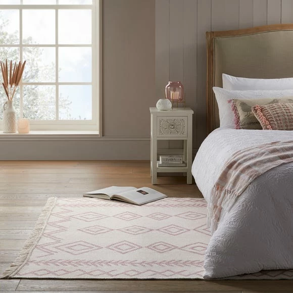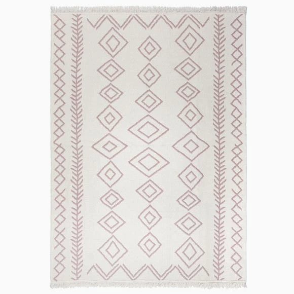 The Edie Recycled Rug pairs a classic berber look with a pastel pink palette and fringing for a global-inspired feminine statement in your space. Made with recycled cotton, crafted in a woven look, the Edie Recycled Rug gives your space a sustainable style. To add longevity to your rug, the Edie Recycled Rug is fully reversible, doubling your new rug’s life. The low-profile composition is durable for high-traffic areas and sitting under furniture. We love using the Edie Recycled Rug in dining and living spaces to add a comfy global-element to your spaces.