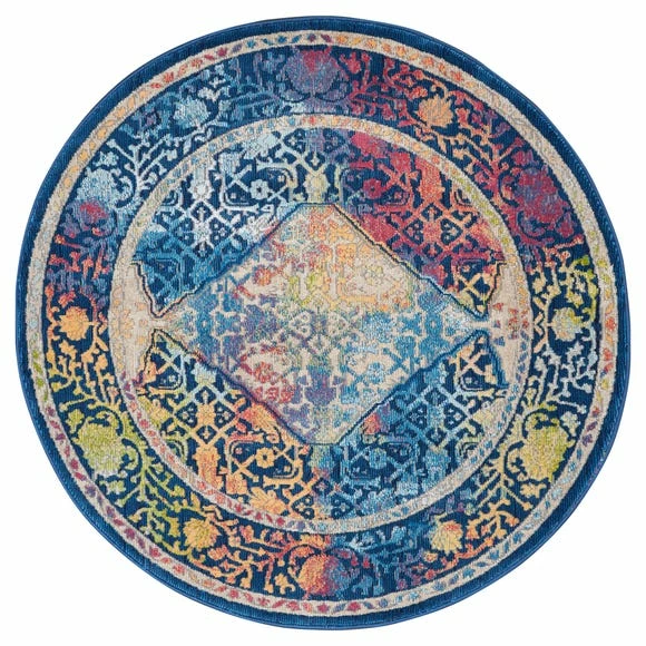 The spectacular colours of this Ankara Global Collection rug bring a surprising bohemian charm to this corner-medallion design. The combination of traditional patterns and ombred colours reminiscent of the ’60s make this rug unforgettable, and the perfect casual accent for any space.