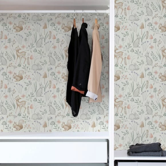 Featuring beautiful array of woodland animals, this Nu Wall wallpaper is a great way to add beauty into your room. This stunning self adhesive wallpaper can be pulled up and removed easily. Repositionable and removable, this wallpaper leaves no sticky residue behind upon removable and can be used on a variety of surfaces