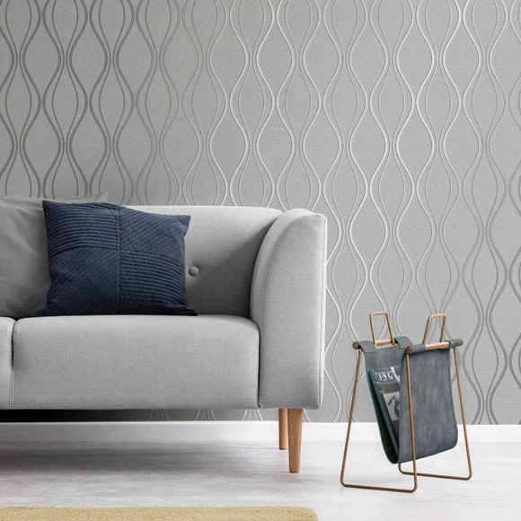 A contemporary, eye catching design with a high shine metallic foil finish on a textured matte backdrop. This luxurious vinyl wallpaper is oozing both sophistication and opulence. The wallpaper has the added benefit of being durable. This timeless colourway is made of grey and silver which can bring elegance to any room within your home. The wallpaper has a 53cm straight match.