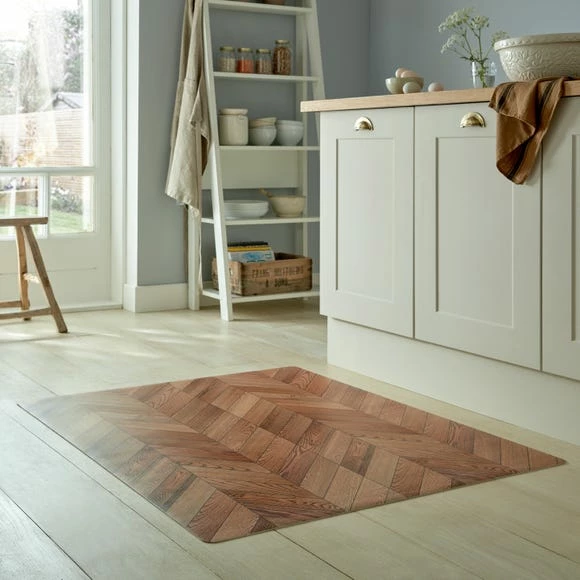 Inspired by traditional parquet flooring the Parquet Vinyl Mat adds a timeless look to your space. The 100% vinyl composition makes the Parquet Vinyl Mat perfect for on-the-go homes. The low-profile design is hard-wearing, the ideal choice for adding some comfort to high-traffic zones. Wipe-clean and moppable, the Parquet Vinyl Mat is pet and child friendly. We love using in kitchens, hallways and bathrooms to add a cushioned element to hard floors and some traditional style to your busy spaces.